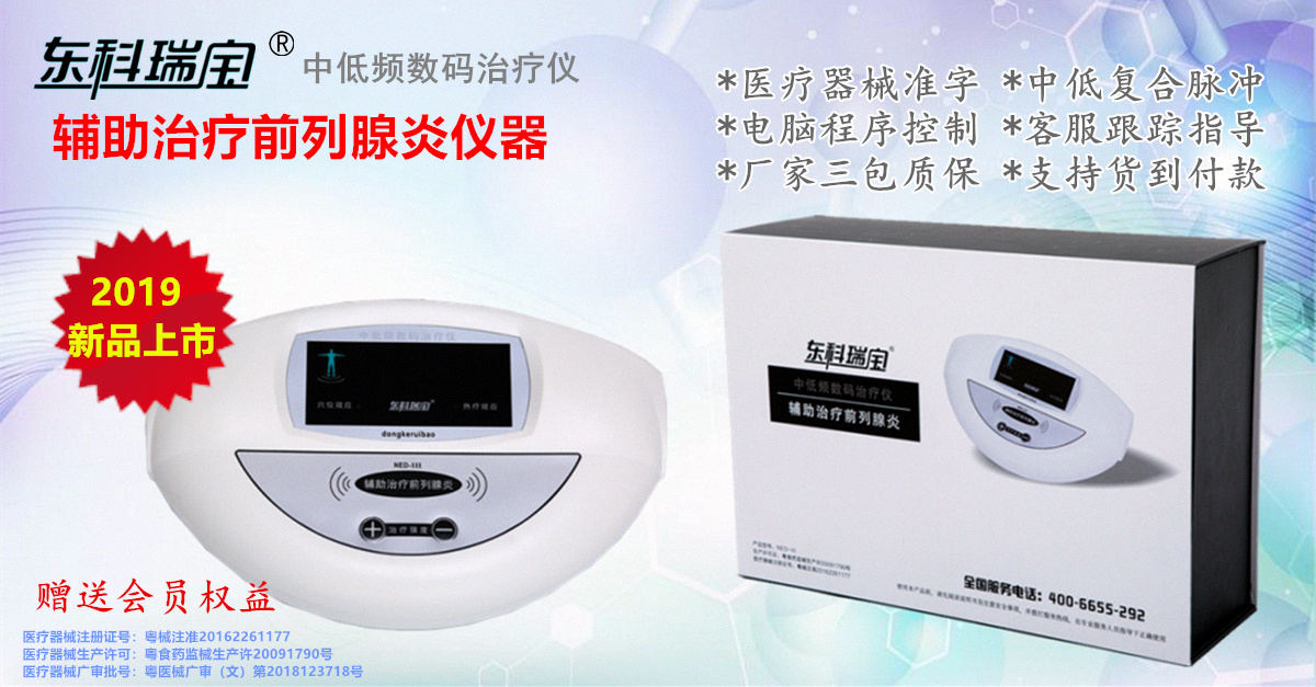 東科瑞寶前列腺專用儀器采用多級性中低頻復(fù)合脈沖電流,根據(jù)前列腺疾病治療的特性,由專門設(shè)計的電腦程序控制中頻脈沖電流3000Hz-至低頻脈沖電流370Hz之間不斷變頻轉(zhuǎn)換,利用專用理療電極片等配件耗材輸出,并通過特定穴位經(jīng)絡(luò)釋放,起到輔助治療前列腺炎等疾病的作用。